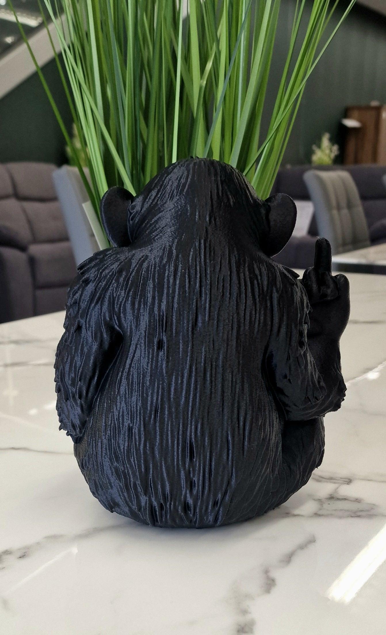 Add a bold touch of humor to your home or office with our 3D Printed Cheeky Naughty Monkey Statue. This black PLA print features a seated chimp flipping the bird and sticking out its tongue – perfect for those who appreciate a little sass in their space. Whether it’s a desk conversation piece or a quirky gift, this unapologetic chimp delivers serious attitude with high-detail craftsmanship