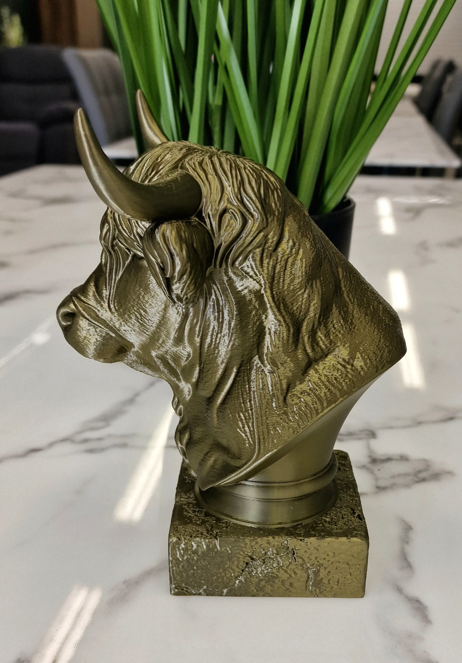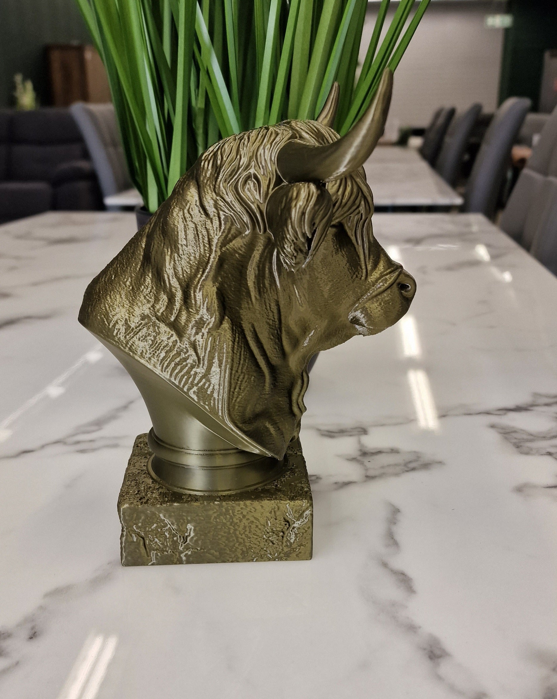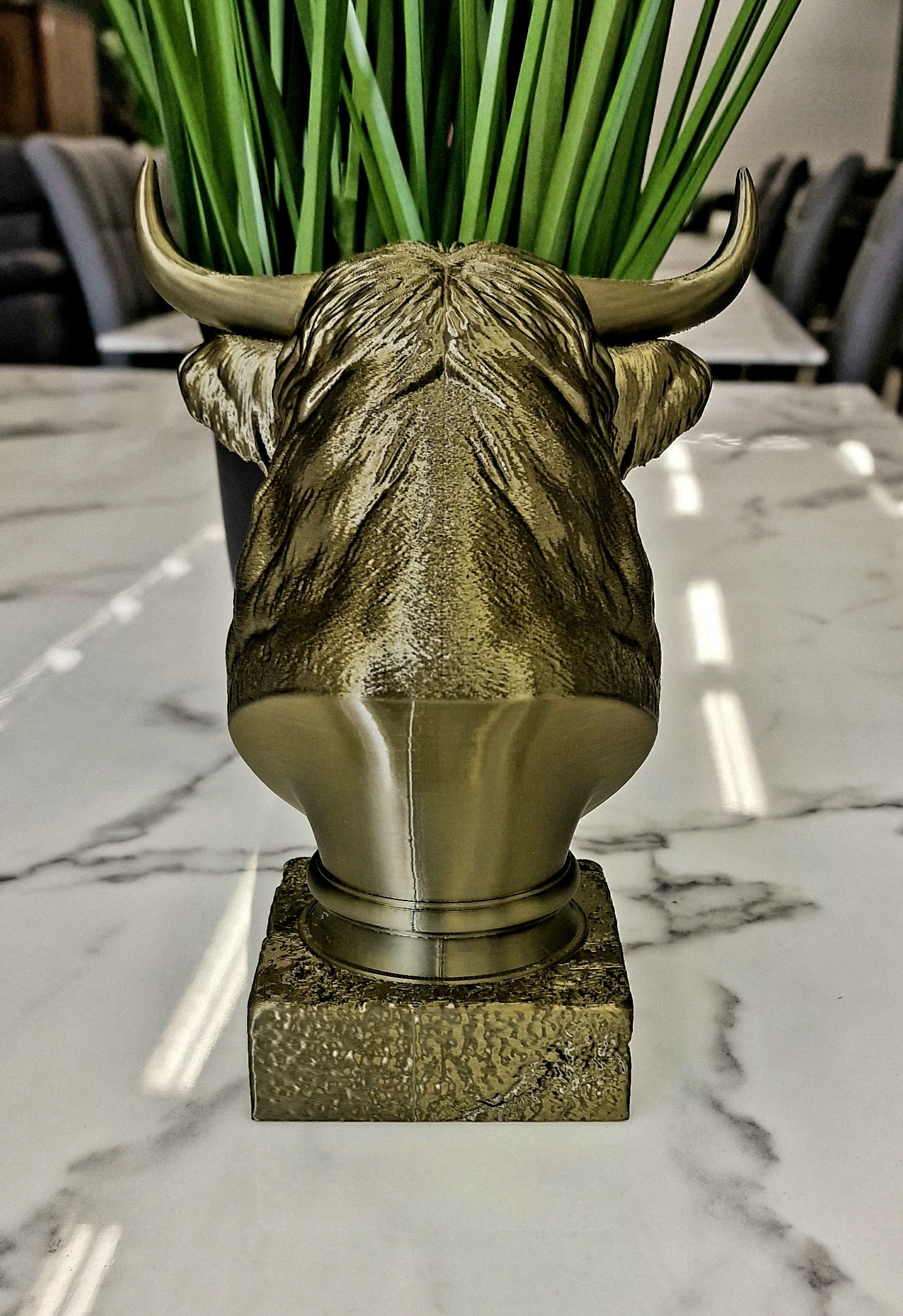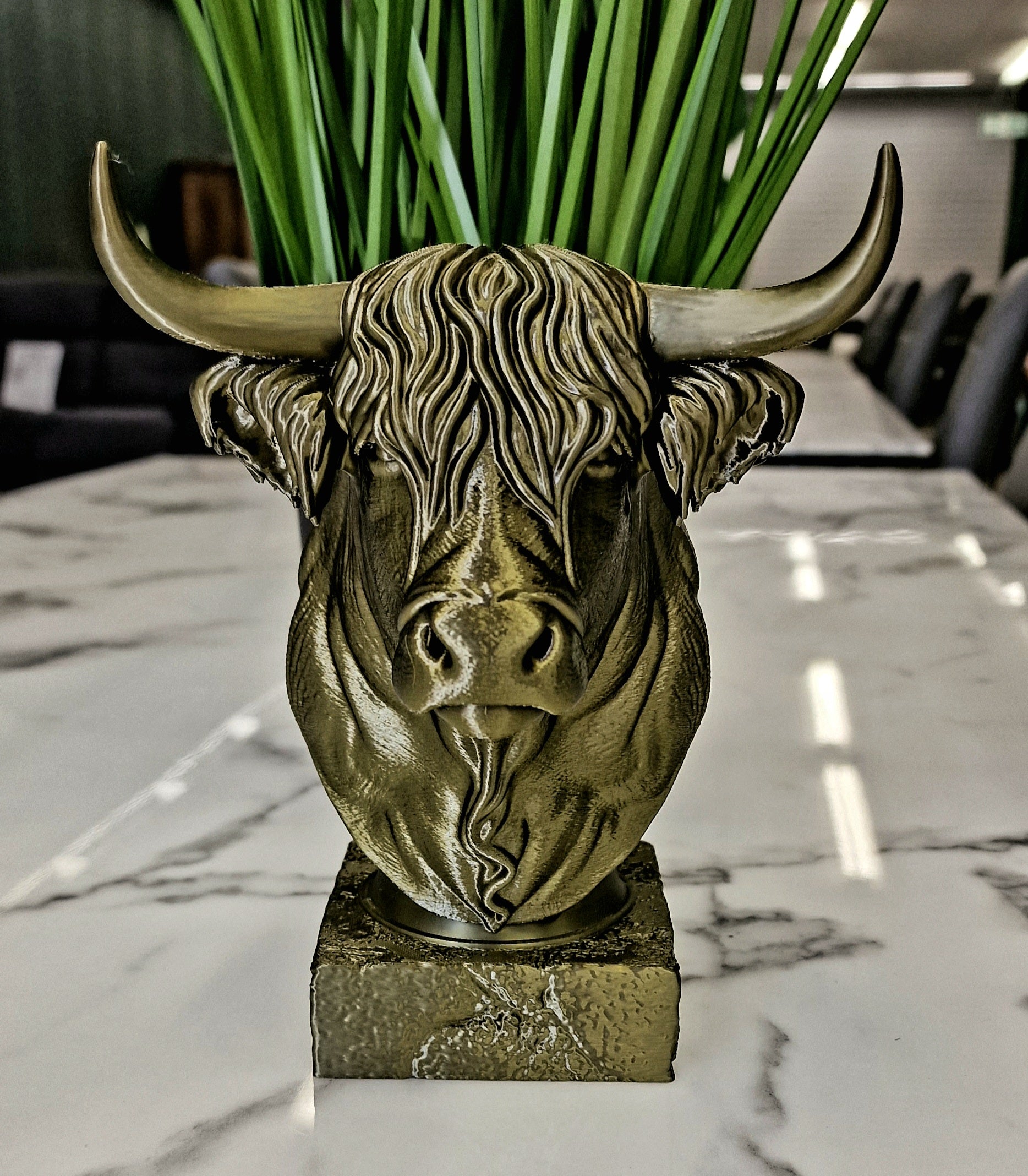 3D Printed Highland Cow Bust – Scottish Highland Cattle Shelf Décor