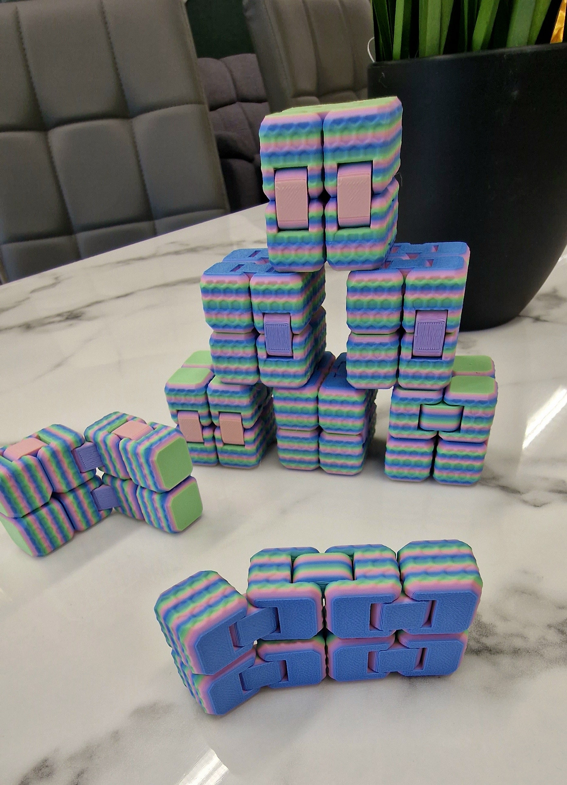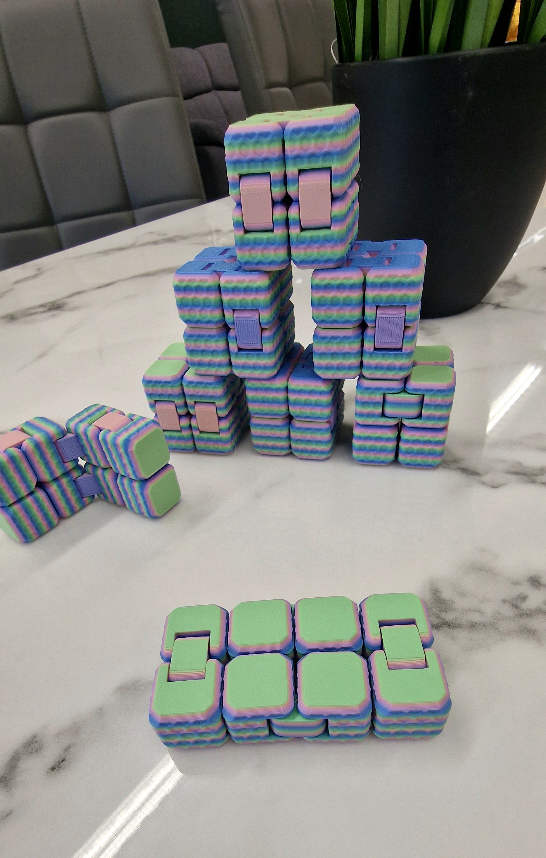 Unwind in style with our 3D Printed Multicoloured Infinity Cube – the ultimate fidget toy for kids, teens, and adults alike! Designed for endless flipping, folding, and fun, this articulated cube is printed in vibrant, eye-catching colours that give it a playful and modern look.