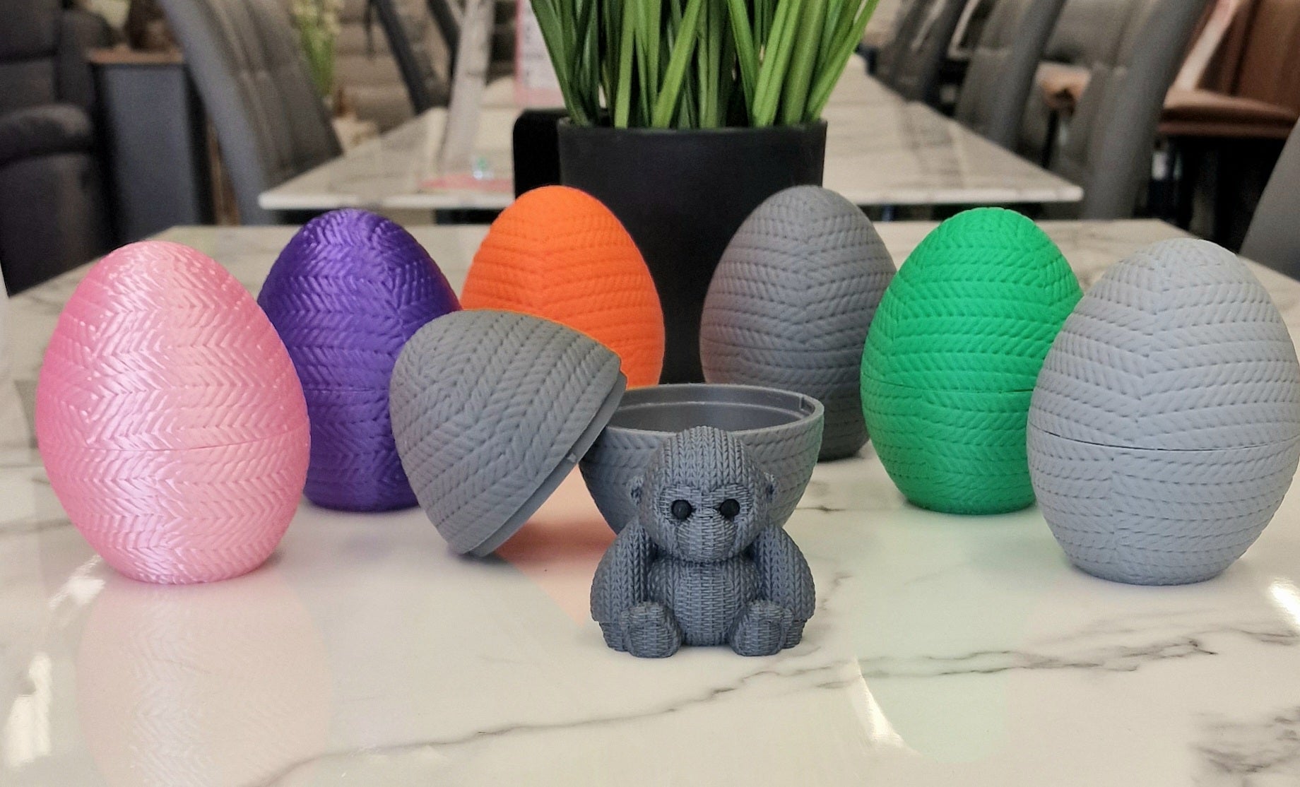 Despite its knitted appearance, there’s no wool involved – just high-quality 3D printing that captures every stitch-like detail.