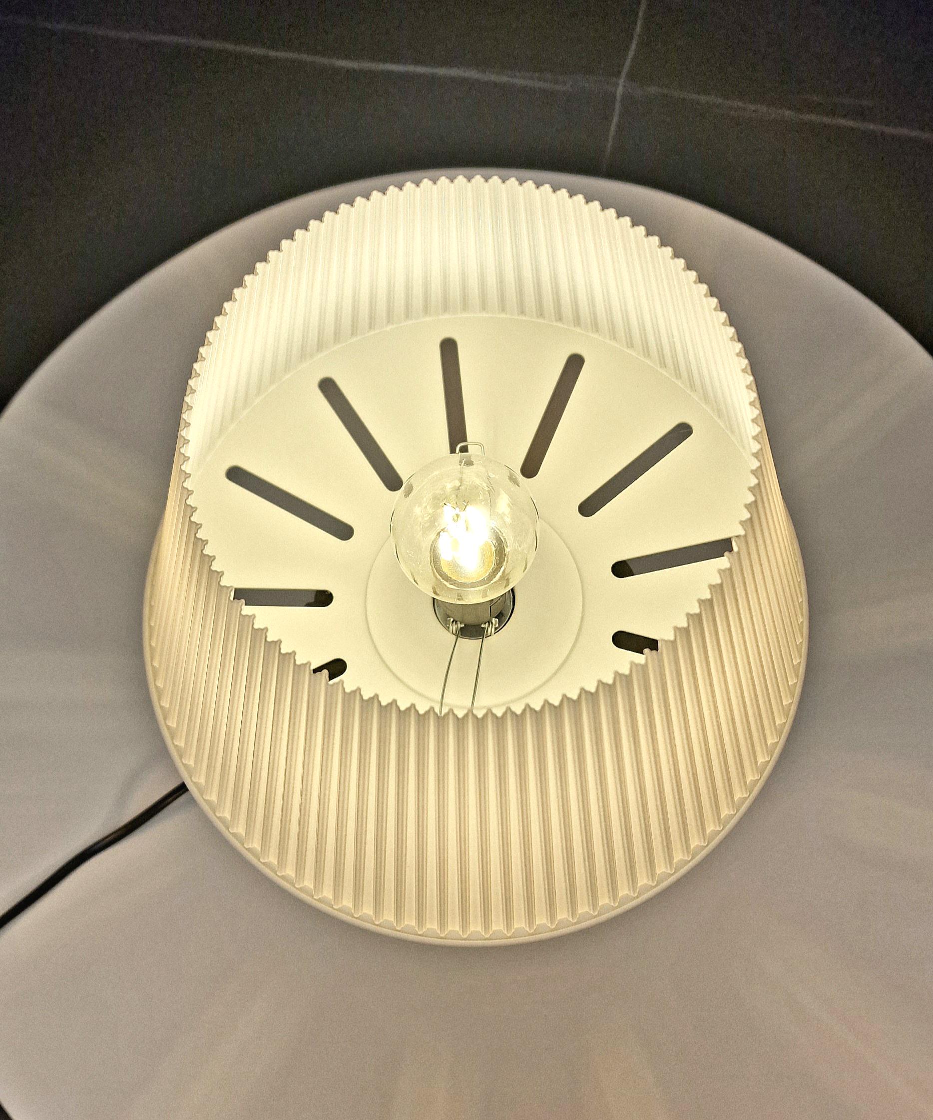 We use eco-friendly bio-polymer materials sourced from plants that are both lightweight and durable. The lampshade provides an opaque appearance when the lights are off, the lamp gives a unique shine to your home or bedroom or any relaxing space.