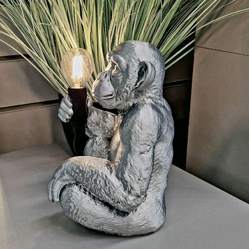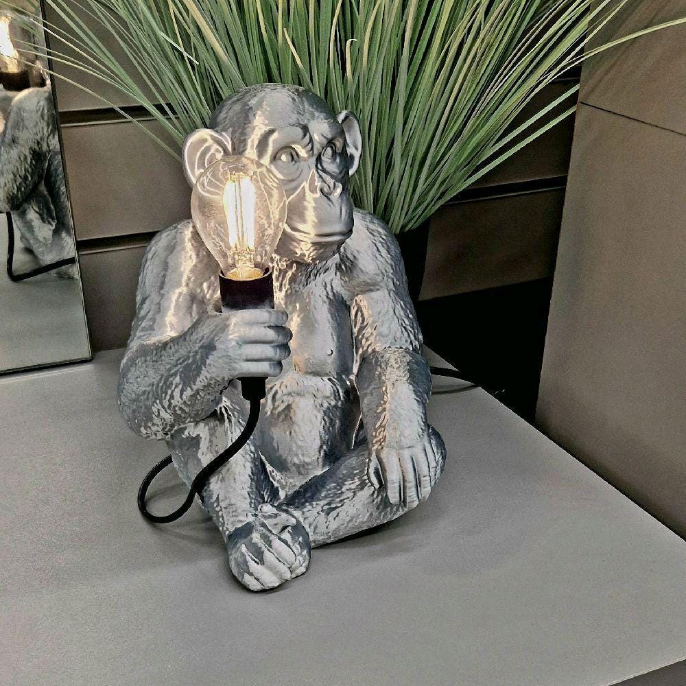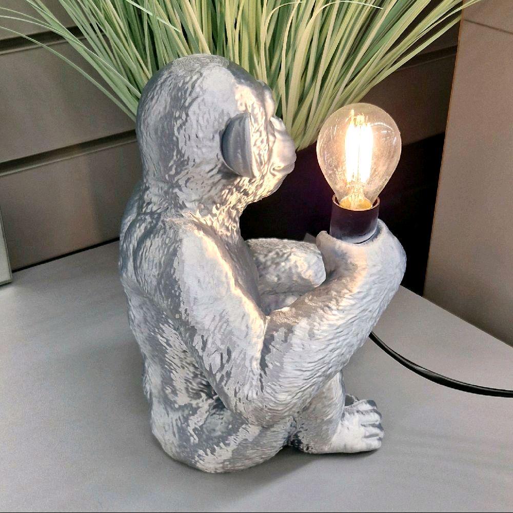 Silver Silk Effect Monkey Table Lamp | Dimmable LED Lighting | Unique Home Décor | Animal Lamp for Living Room, Bedroom, Gift Idea