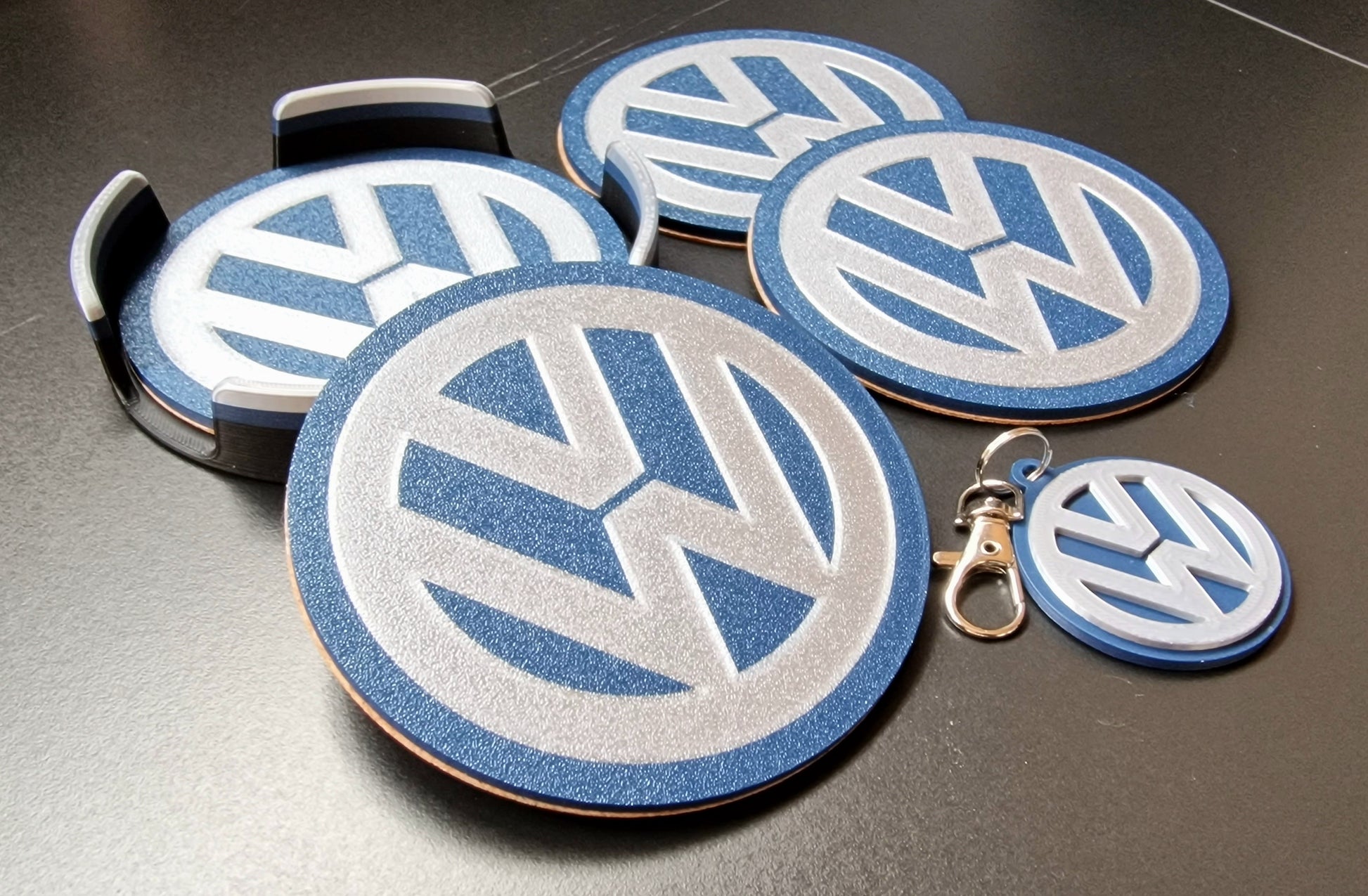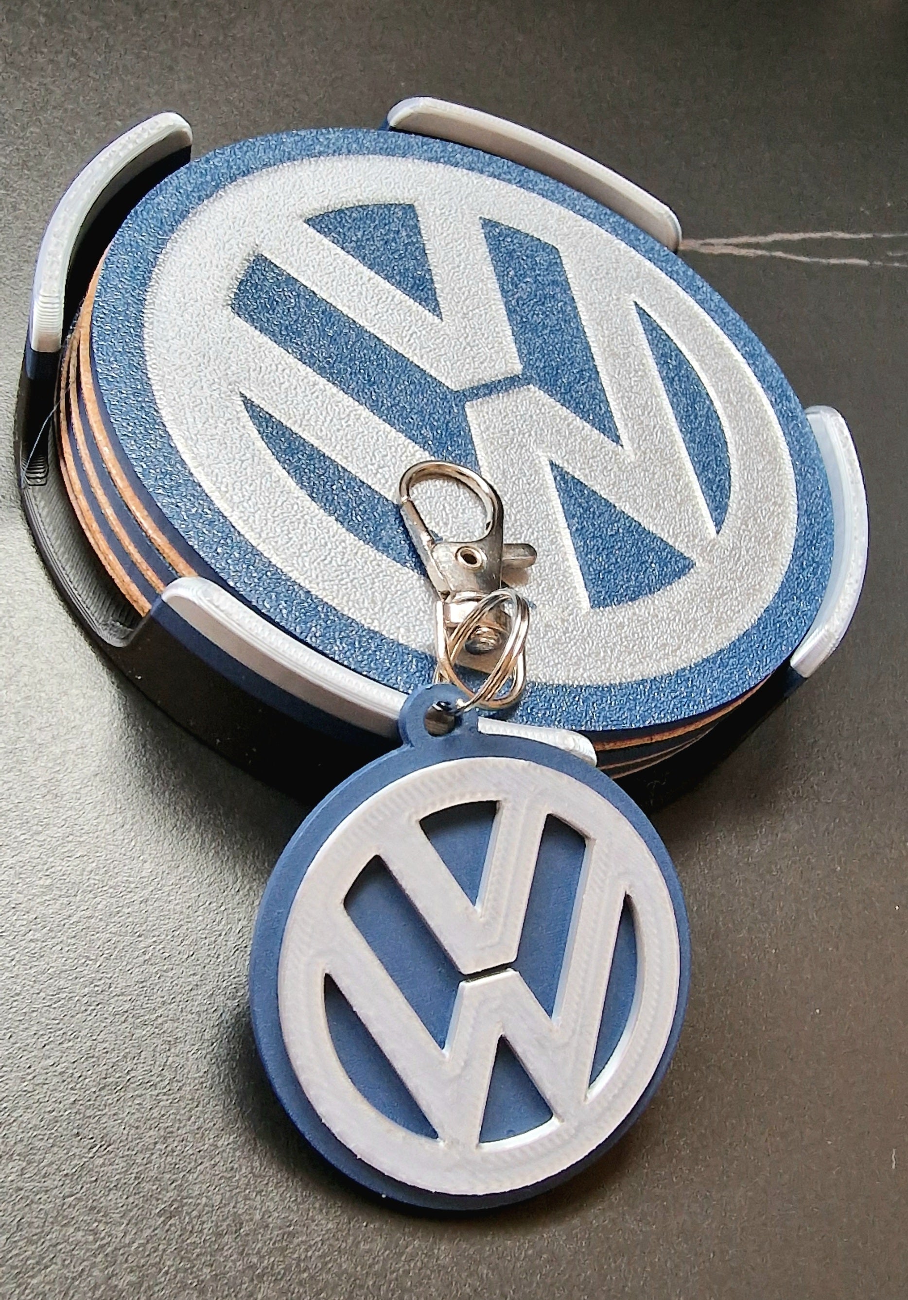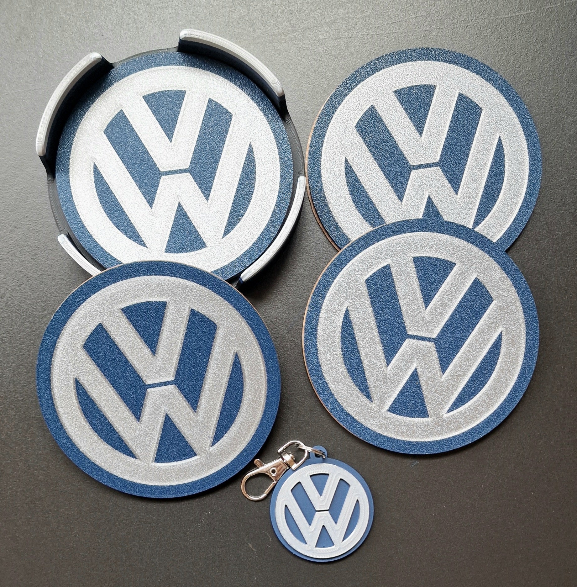 Volkswagen Coaster & Keyring Gift Set – Desk & Home Accessories (Blue & Silver)